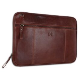 Made using full-grain genuine leather combined with fittings of the highest quality, this Tech Folder is modern and stylish. At 37 cm in width, 26 cm in height and just 2.5 cm in thickness, it has enough capacity to carry all your work essentials in a very slim package. It consists of 2 large compartments to fit a slim laptop (MacBook 13-inch or similar 13-inch laptop) and a tablet of any brand. Also present are 2 visiting card slots and a pen slot. A diary or notebook can also be carried inside the folio and closed with the help of a wrap-around zip closure provided to secure the contents.